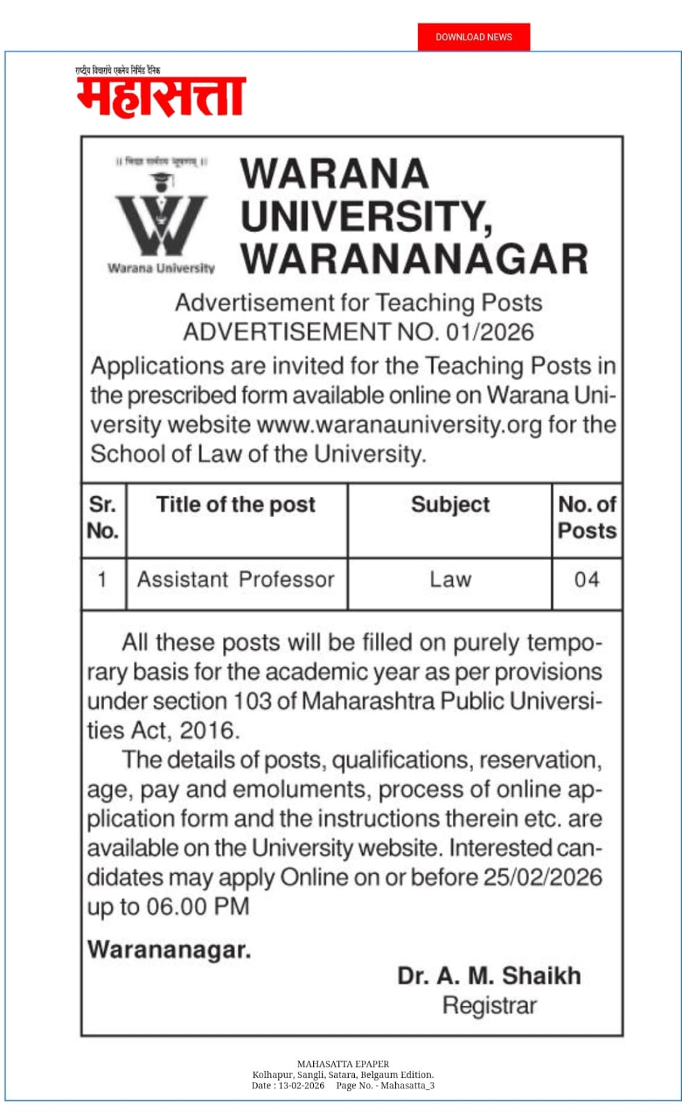 The prime goal of Warana University is to nurture in-depth capabilities in science, technology, commerce, management, humanities, pharmacy, and law to accelerate the pace of applied skills and facilitate its transition into applications, which will create human resources for sustainable Atmanirbhar Bharat
